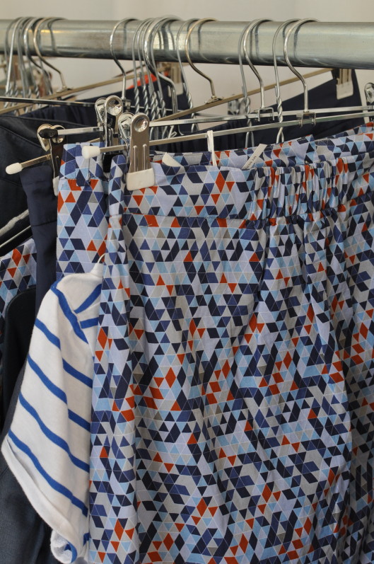 Während einzelne Teile aus der jetzt zu Ende gehenden Sommerkollektion bereits für den Sample Sale zusammengestellt wurden, zeigte mir Caro bereits einige Teile aus der neuen Kollektion, die ab Oktober in den Läden zu finden sein wird. Melt, construct and connect waren drei wichtige Themen für die Designerin, die ihren Fokus vor allem auf das Modellieren der Kreationen und dem Verschmelzen von Farben und Drucken legte. Zum ersten Mal experimentierte studio JUX zudem mit Monocel®, einer Bambus-Lycocell-Faser, die ähnlich nachhaltig ist wie Bio-Baumwolle. Zudem gibt es ebenfalls zum ersten Mal ein handgefärbtes und handgewebtes Material aus Kathmandu, das nun Einzug in die Modewelt erhält. Da aller guten Dinge 3 ist, verwendete das Label auch zum ersten Mal einen Digitalen Druck für ihre Kollektion. Dies alles lässt sich, wie auch schon die vorherigen Kollektionen, sehr gut ansehen.